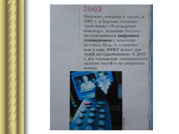 Самые популярные телеканалы (доля на рынке в проц. , сост. на янв. 2004 г. ) l РТЛ l Третий канал l ЦДФ l АРД l Сат 1 l Про зибен l 15, 2 l 14, 4 l 14, 1 l 13, 1 l 10, 3 l 6, 9