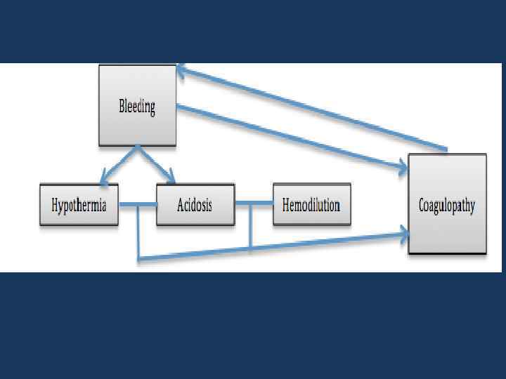 Снижение концентрации • Введение кристаллоидных, коллоидных растворов, факторов свертывания эритроцитной массы вызывает снижение концентрации факторов свертывания крови, тяжесть которой пропорциональна объему введенной жидкости. • Гемодилюционная коагулопатия - не простое механическое разведение ее компонентов, а сложное влияние на систему гемостаза – – инфузионных растворов, ацидоза, гипотермии, анемии