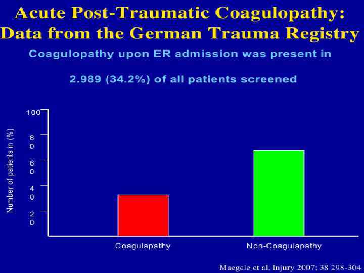 • Гемодилюционная коагулопатия – вторичное нарушение гемокоагуляции обусловленное инфузией значительных объемов растворов (кристаллоидных, колоидных), а также компонентов крови (эритроцитной массы, тромбоконцентрата)