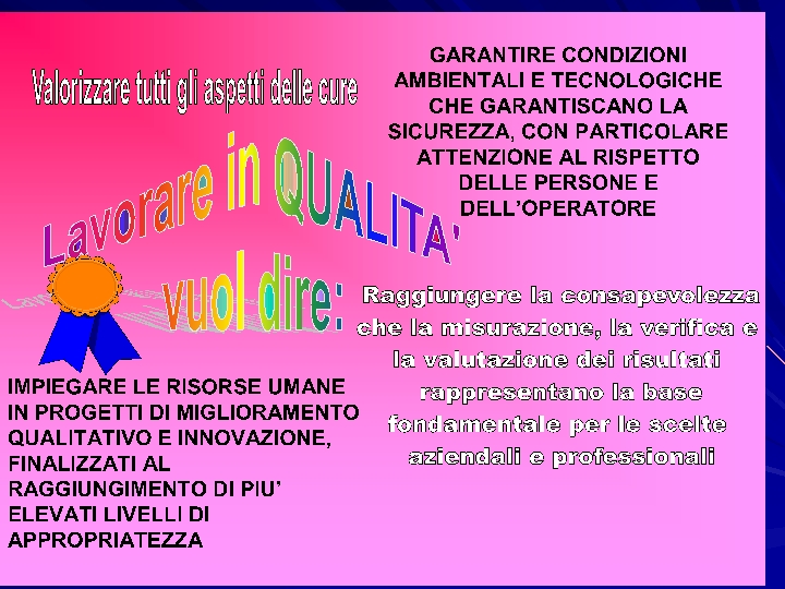q Sfida obbligata da un mercato sanitario sempre più concorrenziale; q Grande opportunità per raggiungere eccellenza di risultati e gratificazione professionale q QUALITA’ come PRASSI ORDINARIA