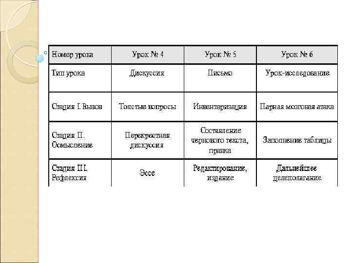 В технологии КМ выделяются три стадии: 1) вызов; 2) осмысление новой информации; 3) рефлексия.