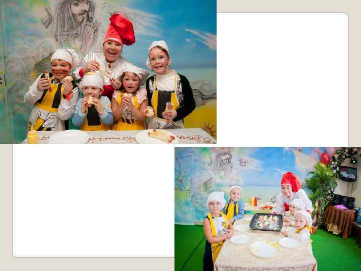 Очень интересное, а главное еще и вкусное развлечение для детей и родителей! Все дорогие гости становятся на время настоящими поварами – одевают фартук, поварской чепчик и начинают творить самые вкусные угощения!