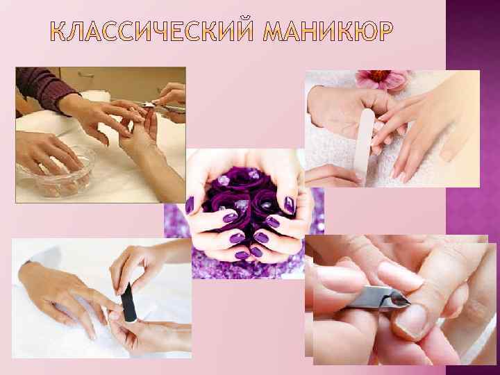 Классический маникюр подразумевает под собой обработку кутикулы. Кожица вокруг ногтя обрабатывается специальными средствами для смягчения кутикулы, после чего ее срезают маникюрными ножницами. Отсюда и вариант названия классического маникюра – обрезной. В процессе обработки ногтей используют ванночки с мыльным раствором, именно поэтому за этим видом маникюра закрепилось еще и название «мокрый» .