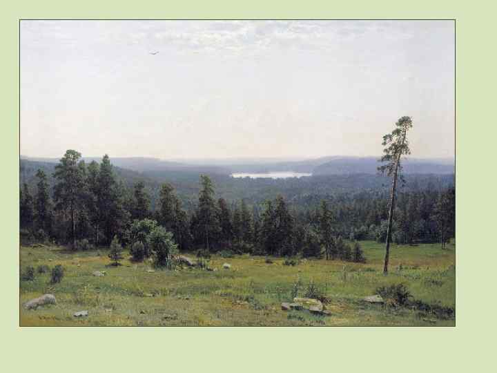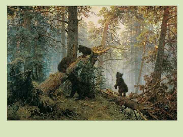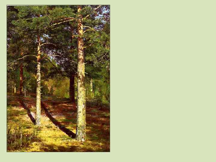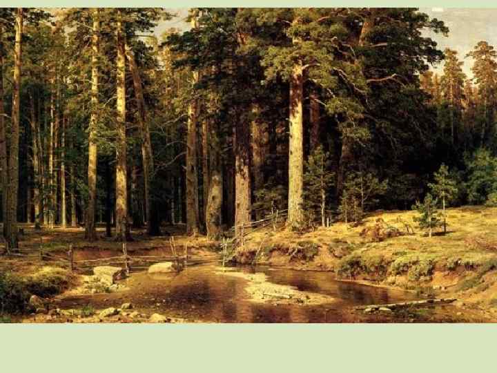ШИШКИН ИВАНОВИЧ (1832 -1898) Замечательный русский художникпейзажист, выдающийся мастер рисунка и графики. Создатель более 600 живописных произведений. Обладатель почетных наград, нескольких серебряных и золотых медалей Академии художеств. Академик и профессор живописи Петербургской академии художеств. Руководитель пейзажной мастерской при Академии художеств. БОГАТЫРЬ РУССКОГО ЛЕСА. Все свое творчество посвятил только лесу, лесным далям. И. Н. Крамской Портрет И. И. Шишкина