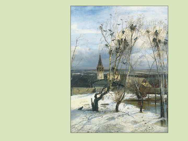 САВРАСОВ АЛЕКСЕЙ КОНДРАТЬЕВИЧ (1830 -1897) Выдающийся русский художникпейзажист, зачинатель демократического направления в русской пейзажной живописивоспитанник, а потом и преподаватель Московского училища живописи ваяния и зодчества МУЖВЗ. , один из членов учредителей Товарищества передвижников. Родоначальник русского лирического пейзажа. В. Г Перов А. К. Саврасов, 1878 ГТГ