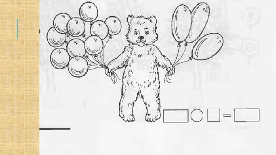 КАТИТСЯ КОЛОБОК, А НАВСТРЕЧУ ЕМУ МЕДВЕДЬ: «КОЛОБОК, КОЛОБОК! Я ТЕБЯ СЪЕМ» . «ГДЕ ТЕБЕ, КОСОЛАПОМУ, СЪЕСТЬ МЕНЯ!» Я КОЛОБОК, КОЛОБОК! В МАТЕМАТИКЕ СИЛЁН; Я ОТ ДЕДУШКИ УШЕЛ, Я ОТ БАБУШКИ УШЕЛ, Я ОТ ЗАЙЦА УШЕЛ, Я ОТ ВОЛКА УШЕЛ, И ОТ ТЕБЯ, МЕДВЕДЬ, НЕ ХИТРО УЙТИ! ТАК ТЫ ГОВОРИШЬ В МАТЕМАТИКЕ СИЛЁН? ДА. И ЗАДАЧКИ МОЖЕШЬ РЕШАТЬ? МОГУ, ЕСЛИ РЕБЯТА МНЕ ПОМОГУТ. ХОРОШО, ОТПУЩУ ТЕБЯ ЕСЛИ ВЫ РЕШИТЕ МОЮ ЗАДАЧУ.