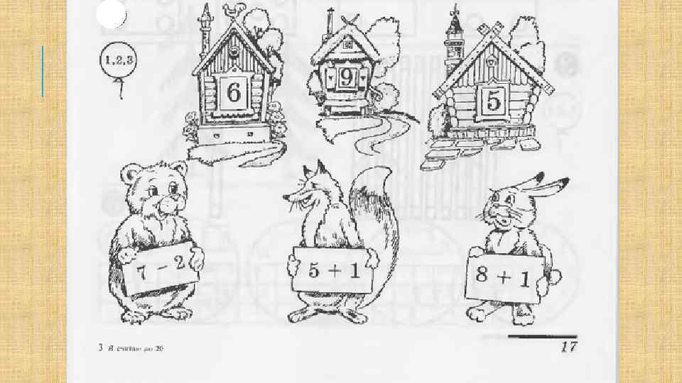 Надоело колобку лежать: он и покатился с окна на завалинку, с завалинки - на травку, с травки на дорожку и покатился по ней. Катится колобок по дорожке, а навстречу ему заяц: Колобок, колобок! Я тебя съем! Нет, не ешь меня, косой, я тебе песенку спою. Я Колобок, Колобок! В математике силён; Я от дедушки ушел, Я от бабушки ушел, И от тебя, зайца, не хитро уйти! Хорошо, отпущу тебя если с ребятами ты выполнишь моё игровое упражнение «Сосчитай и напиши» .