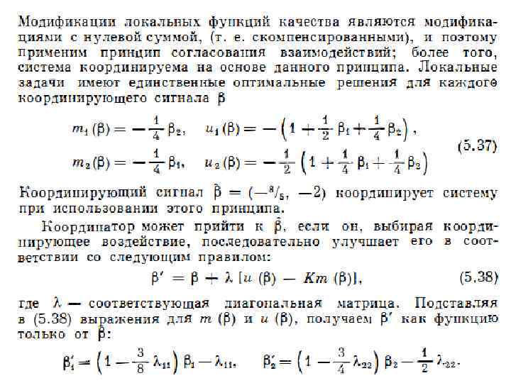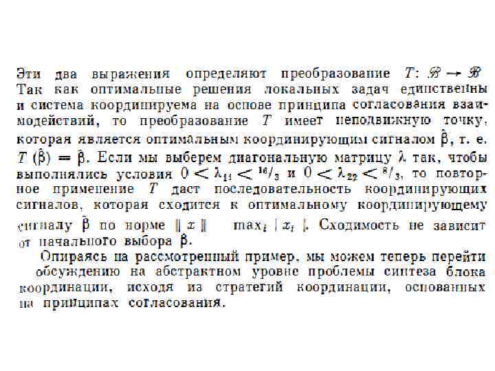 КООРДИНИРУЕМОСТЬ ПРИ ИСПОЛЬЗОВАНИИ ПРИНЦИПА СОГЛАСОВАНИЯ Теорема 5. 15 Предположим, что для каждого координирующего сигнала β в рассматриваемой двухуровневой системе и любого i, 1 ≤ I ≤ n, имеет место всякий раз, когда существует его правая часть. Тогда наличие в системе сежуровневой согласованности как необходимо, так и достаточно для применимости принципа согласования взаимодействий. Теорема 5. 16 Для того, чтобы система была координируемой при использовании этого принципа, она должна обладать локальной согласованностью. Теорема 5. 17 Предположим, что удовлетворяются условия теоремы 5. 15. Тогда наличие в системе локальной согласованности будет как необходимым, так и достаточным условием для координируемости на основе принципа согласования взаимодействий.