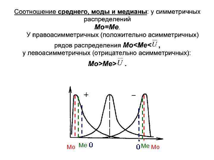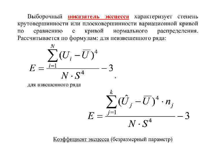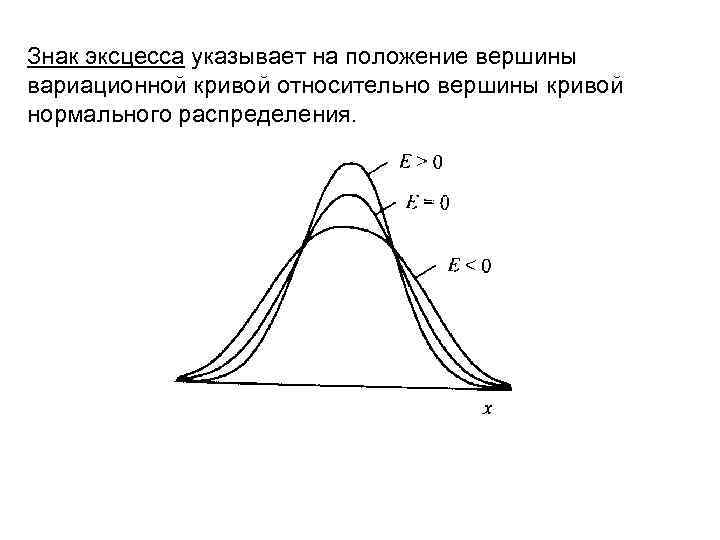 Знак эксцесса указывает на положение вершины вариационной кривой относительно вершины кривой нормального распределения.