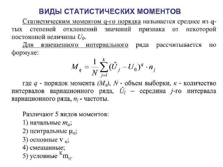 ВИДЫ СТАТИСТИЧЕСКИХ МОМЕНТОВ