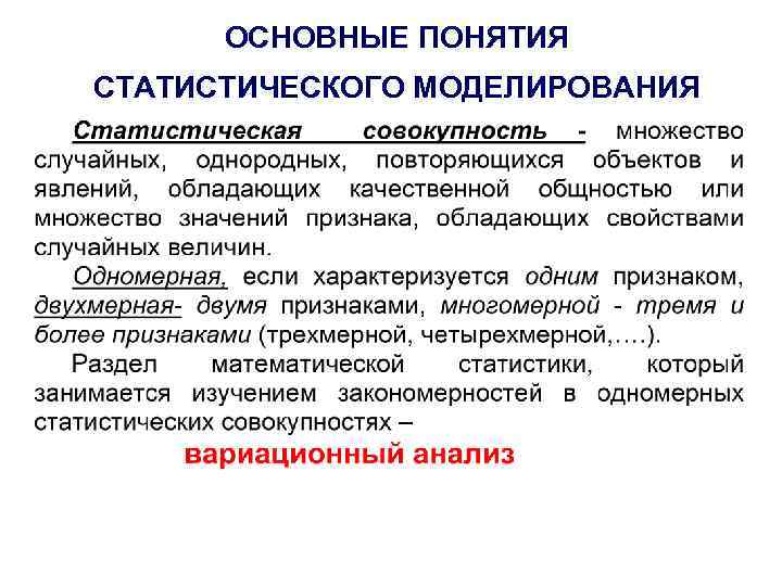 ОСНОВНЫЕ ПОНЯТИЯ СТАТИСТИЧЕСКОГО МОДЕЛИРОВАНИЯ