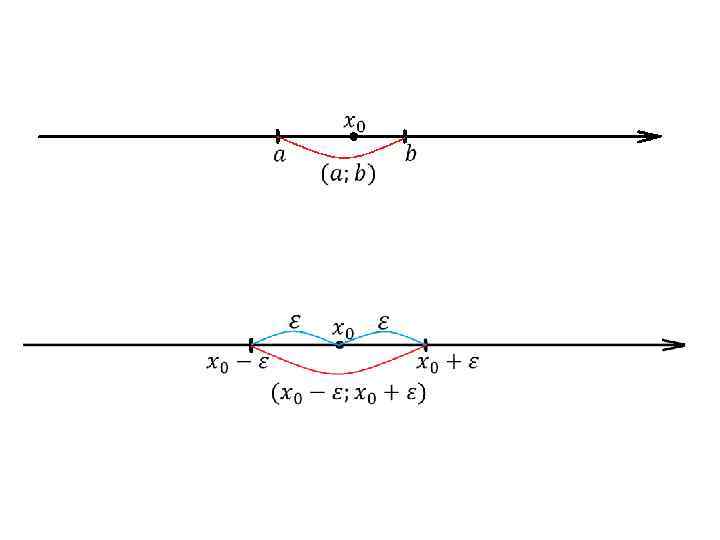 Числа и называются соответственно левым и правым концами промежутков. Пусть любое действительное число (точка на числовой оси). Окрестностью точки любой интервал называется содержащий точку В частности, интервал , где называется -окрестностью точки