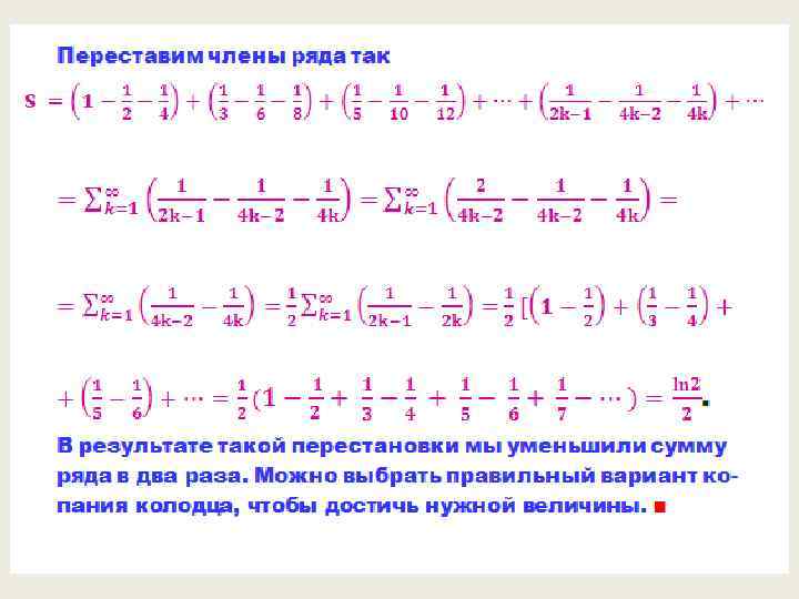 Теорема № 10. Перестановка слагаемых в условно сходящихся рядах.