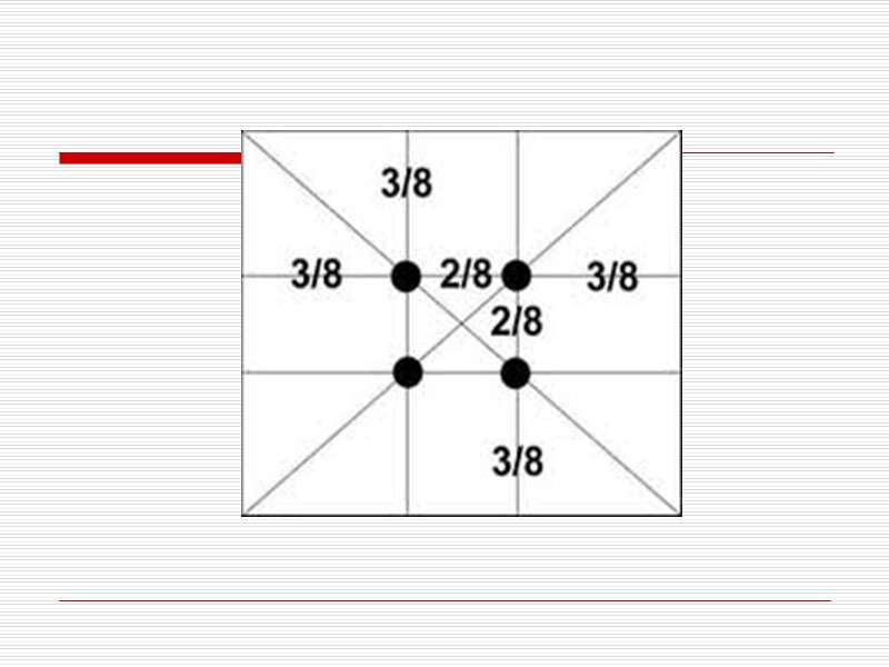 Человек различает окружающие его предметы по форме. Интерес к форме какого-либо предмета может быть продиктован жизненной необходимостью, а может быть вызван красотой формы. Форма, в основе построения которой лежат сочетание симметрии и золотого сечения, способствует наилучшему зрительному восприятию и появлению ощущения красоты и гармонии. Целое всегда состоит из частей, части разной величины находятся в определенном отношении друг к другу и к целому. Принцип золотого сечения – высшее проявление совершенства целого и его частей в искусстве, науке, технике и природе. Еще в эпоху Возрождения художники открыли, что любая картина имеет определенные точки, невольно приковывающие наше внимание, так называемые зрительные центры. При этом абсолютно неважно, какой формат имеет картина - горизонтальный или вертикальный. Таких точек всего четыре, и расположены они на расстоянии 3/8 и 5/8 от соответствующих краев плоскости.
