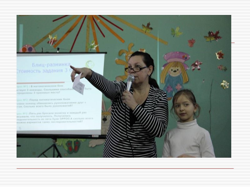 Блиц-разминка Стоимость задания 2балла Вопрос №1 : В математическом бою участвует 3 команды. Сколькими способами могут быть распределены 3 призовых места? Вопрос №2 :Перед математическим боем 24 члена команд обменялись рукопожатиями друг с другом. Сколько всего было рукопожатий? Вопрос №3 :Пять раз бросали монетку и каждый раз записывали, что получилось. Получилась последовательность из пяти букв ОРРОО.А сколько всего возможно вариантов таких последовательностей?