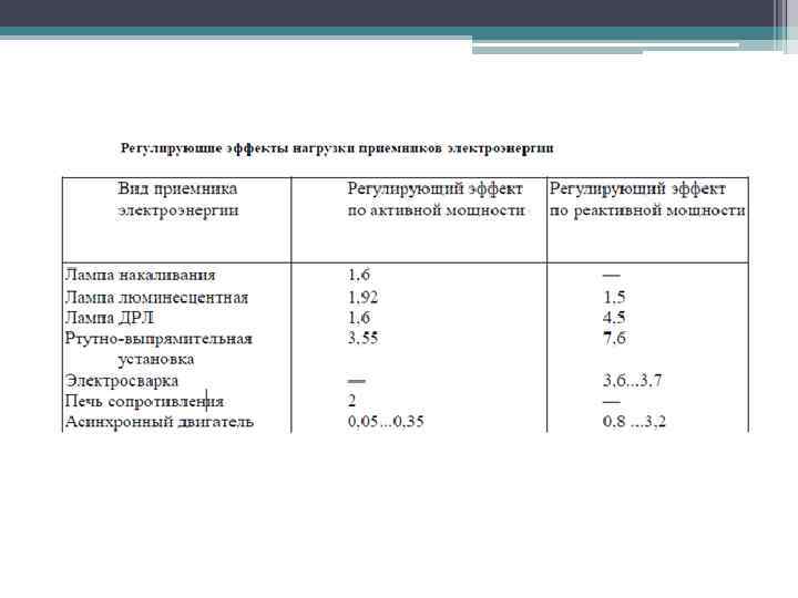 • Однако, при снижении напряжения на люминесцентных лампах до величины 0, 9 Uном они начинают мерцать, а при величине напряжения 0, 8 Uном просто не загораются. • Регулирующий эффект люминесцентных ламп по схеме с расщепленной фазой равен примерно 1, 9 для активной мощности, а для реактивной мощности может быть оценен величиной 1, 5.