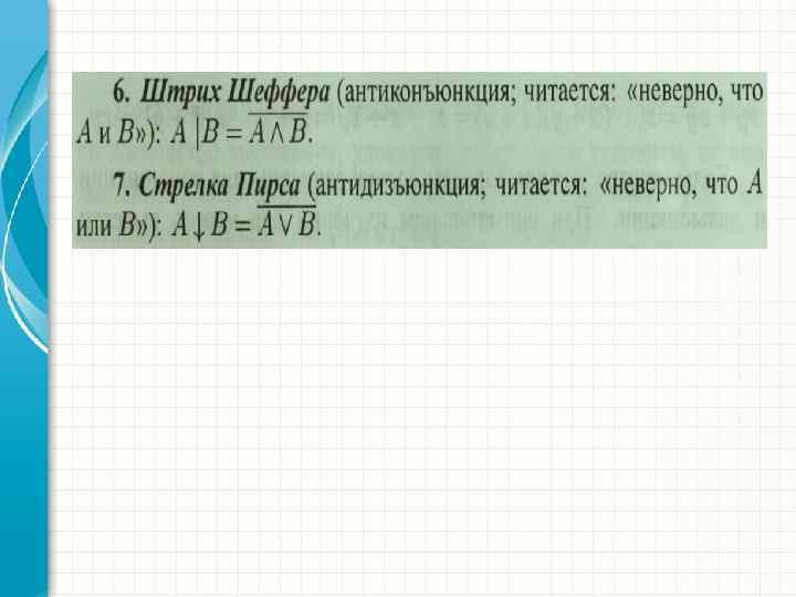 Деякі особливості алгебри висловлювань. В алгебрі висловлювань вводиться дію, якої немає в звичайній алгебрі - заперечення даного вислову. Для кожного висловлювання а існує його заперечення «не -а» , яке будемо позначати символом а. Якщо вислів а істинний (і), то його заперечення хибне (х); якщо а хибний, то його заперечення істинне.