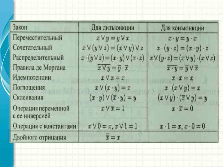 Зазначені десять формул є основними законами звичайної арифметики і алгебри. Джордж Буль, що дав у 1847 р. перше виклад алгебри логіки, зробивши припущення, що букви в записаних десяти формулах позначають не числа, а висловлювання, і показав, що можна вибрати такі визначення дій додавання і множення, при яких всі десять формул залишаються в силі.