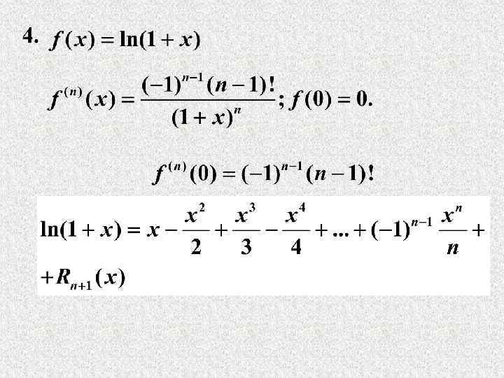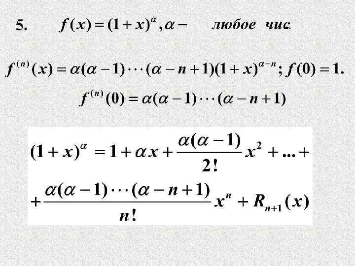 Частные случаи формулы Тейлора. I. Формула Маклорена. (Получается из формулы Тейлора при а = 0 ) где