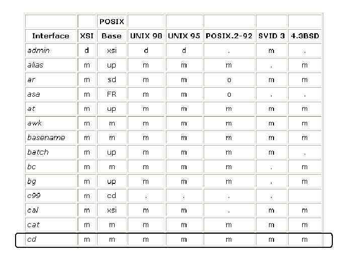 Как же проверять соответствие конкретной системы стандарту POSIX? Формализация такого вопроса не так проста, как кажется на первый взгляд. В современных версиях предлагается 4 вида соответствия (четыре семантических значения слова «соответствия» : полное, международное, национальное, расширенное). В ранних документах приводятся списки двух видов интерфейсных средств: обязательные (по возможности предполагается его компактность) и факультативные.