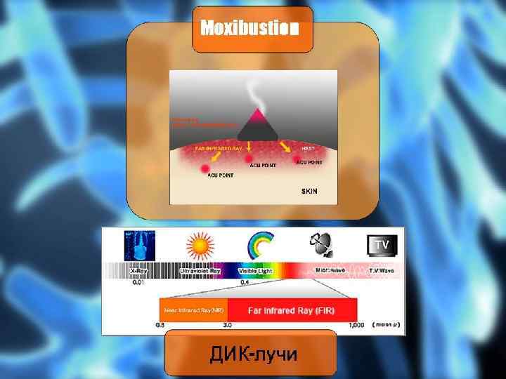 ИНФРАКРАСНЫЕ ЛУЧИ • Длинноволновые инфракрасные лучи • способны передавать энергию тепла вглубь тканей на несколько сантиметров. В результате такого локального прогревания улучшается кровообращение и обмен веществ.
