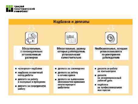 Надбавки и доплаты Делятся на два типа: • Компенсационные - за условия труда, отклоняющиеся от нормальных, за работу в вечернее и ночное время и т. д. • Стимулирующие - доплаты и надбавки за высокую квалификацию, профессиональное мастерство, работу с меньшей численностью, премии, вознаграждения и т. д. 2