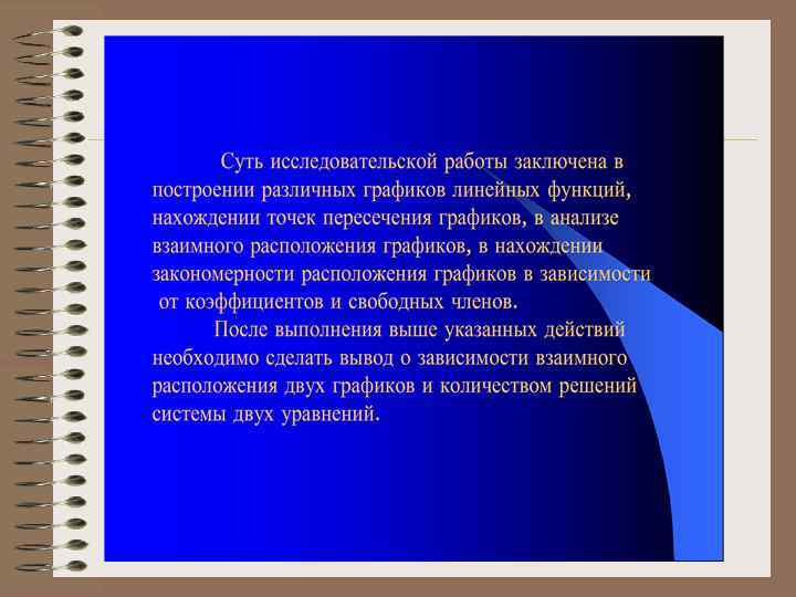 Расшифровка отдельных этапов выполнения индивидуальной исследовательской работы: 1. Подготовительный этап: 1. Выбор примерной темы (заглавия) работы, которая задает направление исследования. Тема окончательно формулируется при подготовке материалов к презентации. Она отражает суть выполненной работы 2. Определение цели работы. Позволяет учащемуся точно представить, что он собирается сделать, чего достичь при выполнении работы. Цель может видоизменяться во время выполнения работы, но в каждый конкретный момент четко определена. Оформляется письменно. 3. Выбор объекта исследования, формирование опытной и контрольной группы. Определяется целью работы, реальными возможностями. Обоснован с точки зрения возможности получения достоверных результатов. 4. Формулирование рабочей гипотезы. Определение конкретных задач, решение которых позволит достичь поставленной цели. Жестко связаны с поставленной целью работы. Определяют этапы выполнения работы. Позволяют учащемуся последовательно, а не хаотично продвигаться к достижению цели.