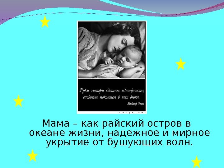 Мама – как райский остров в океане жизни, надежное и мирное укрытие от бушующих волн.