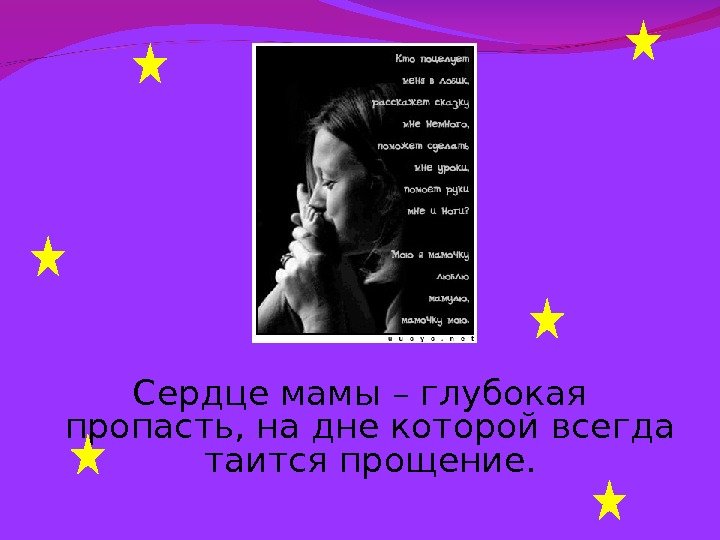 Сердце мамы – глубокая пропасть, на дне которой всегда таится прощение.