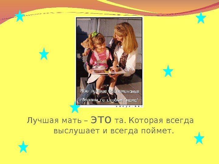 Лучшая мать – это та. Которая всегда выслушает и всегда поймет.