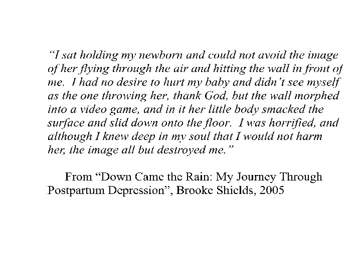“…and when she was done drinking, I eased her into her crib, gave her the cach blanket, and she went straight to sleep. That night I, too, slept like a baby. We loved and needed each other. ” From “Down Came the Rain: My Journey Through Postpartum Depression (Brooke Shields