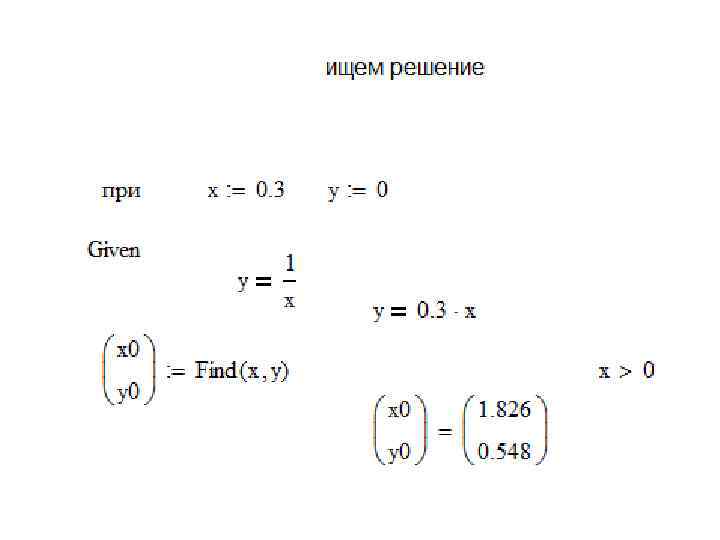Следует отметить, что Math. CAD отличает операции присваивания, значений переменным от операции получения значений. Для операций присваивания используется символ двоеточие [: ], после чего программа сама пишет : =. Для операций получения результатов используется символ равно [=]. Например для присваивания переменной с именем аlfа значения 6. 345 необходимо. набрать alfа: 6. 345, при этом на экране вы увидите: аlfа : = 6. 345