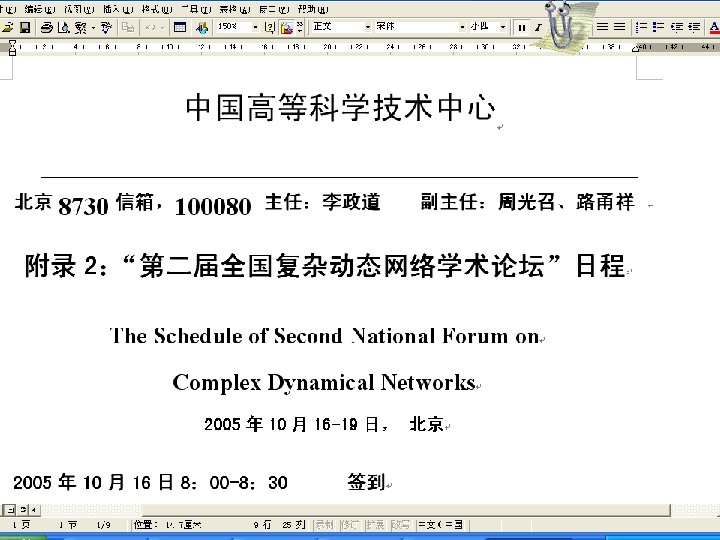 From Mathematical point of view 复杂网络可以从数学上被 描述为有大量结点的动 态的发展的 随机图 SJT 2004_08. pdf
