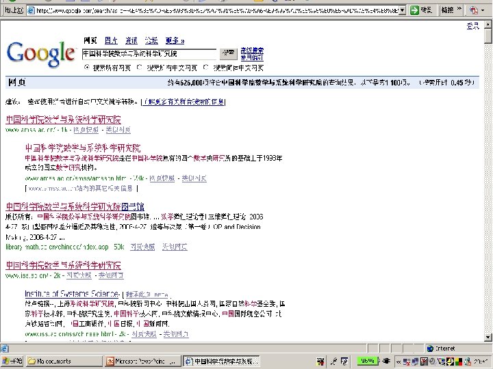 约有626, 000项符合中国科学院数 学与系统科学研究院的查询结果, 以下是第 1 -100项。 (搜索用时 0. 45 秒) How can google make a ranking of 626, 000 pages in 0. 45 seconds?