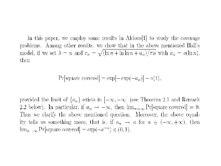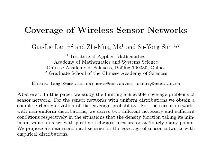 无线传感器的覆盖问题 • 研究传感器半径与传感器置放密度之间 的关系