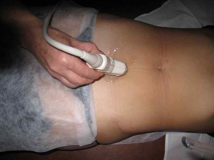 Трансабдоминальное сканирование n n n Конвексный датчик 3, 5 -5 МГц Проводится при наполненном мочевом пузыре Позволяет оценить анатомические и топографические особенности органов малого таза Возможность визуализации крупных образований в малом тазу, а также высоко расположенных образований Минус-невозможность детальной оценки интересующих объектов