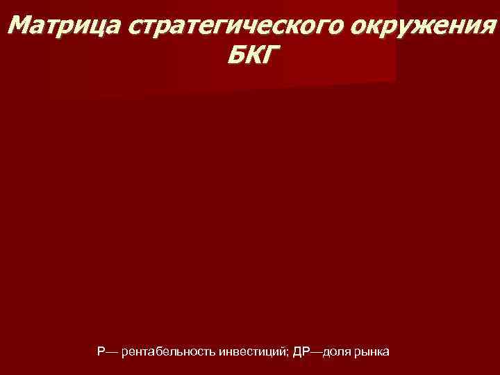 Матрица стратегического окружения БКГ Р— рентабельность инвестиций; ДР—доля рынка