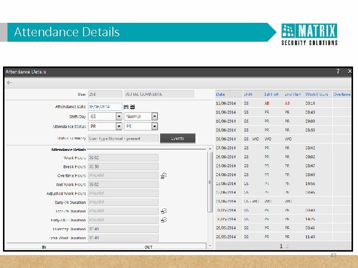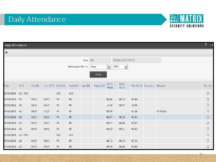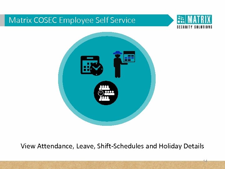 Matrix COSEC Corporates? WHY VAM in. Employee Self Service View Attendance, Leave, Shift-Schedules and Holiday Details 14