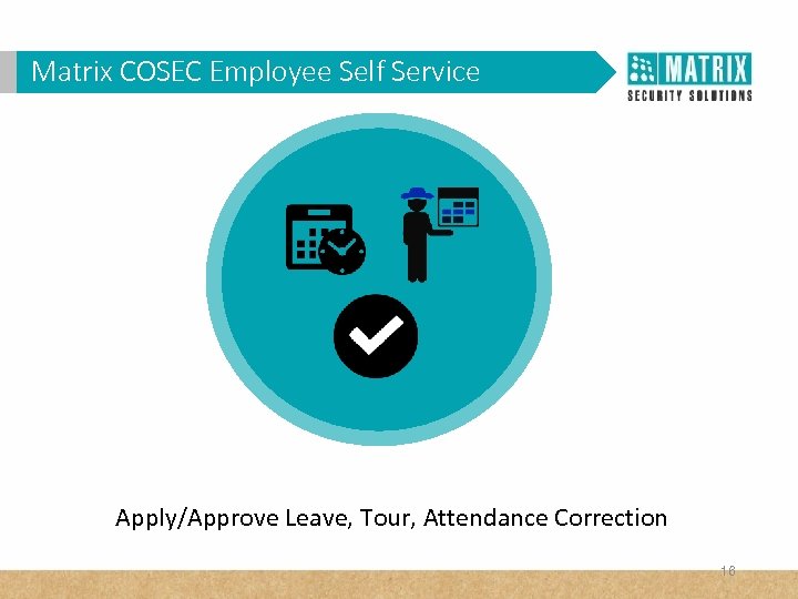 Matrix COSEC Corporates? WHY VAM in. Employee Self Service Apply/Approve Leave, Tour, Attendance Correction 16