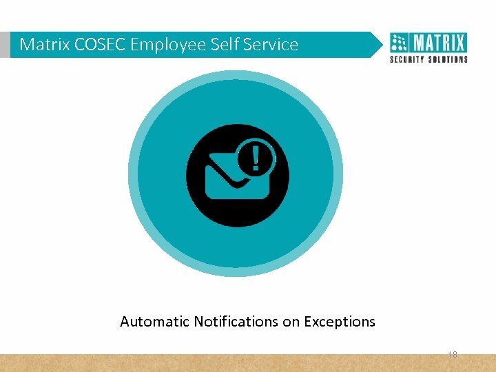 Matrix COSEC Corporates? WHY VAM in. Employee Self Service Automatic Notifications on Exceptions 18