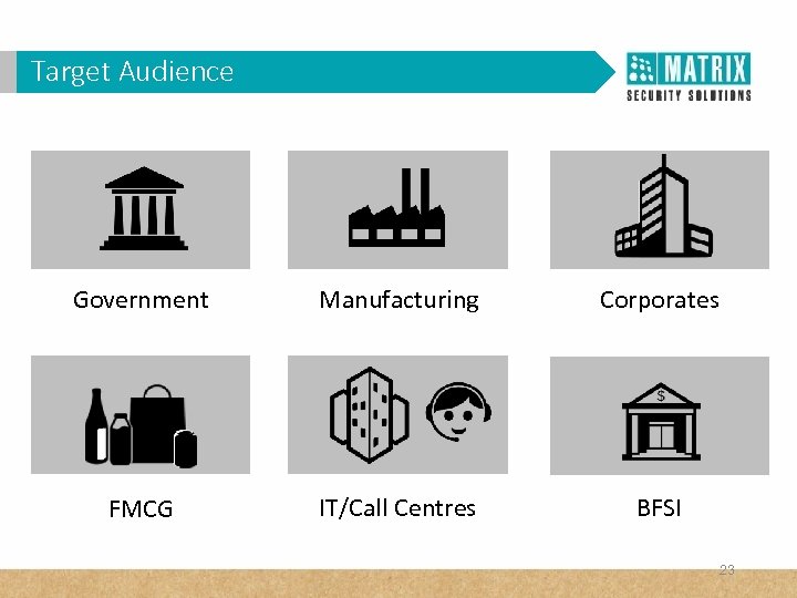 Target Audience Government Manufacturing Corporates FMCG IT/Call Centres BFSI 23