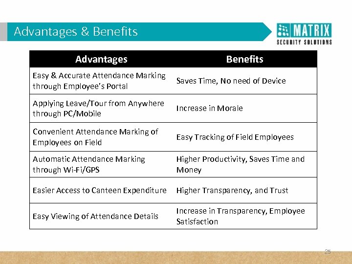 Matrix COSEC Corporates? WHY VAM in. Employee Self Service Online Attendance Marking in Premises and on Field 13
