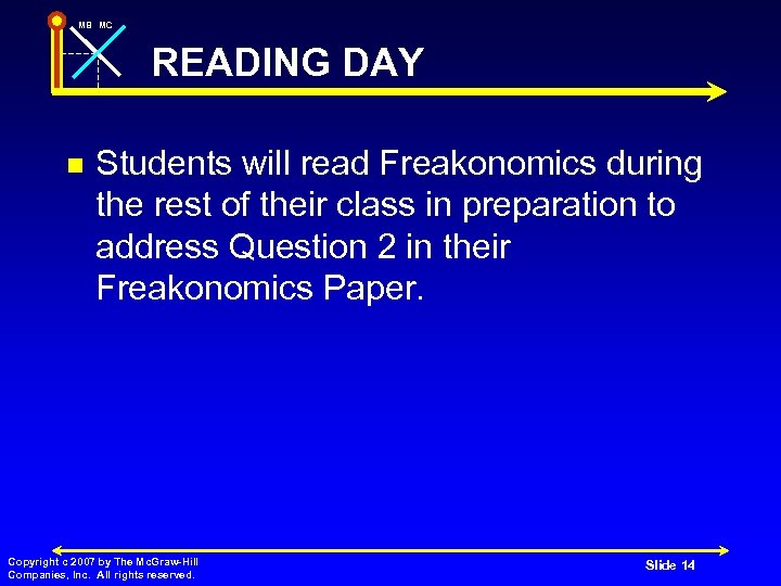 MB MC READING DAY n Students will read Freakonomics during the rest of their class in preparation to address Question 2 in their Freakonomics Paper. Copyright c 2007 by The Mc. Graw-Hill Companies, Inc. All rights reserved. Slide 14
