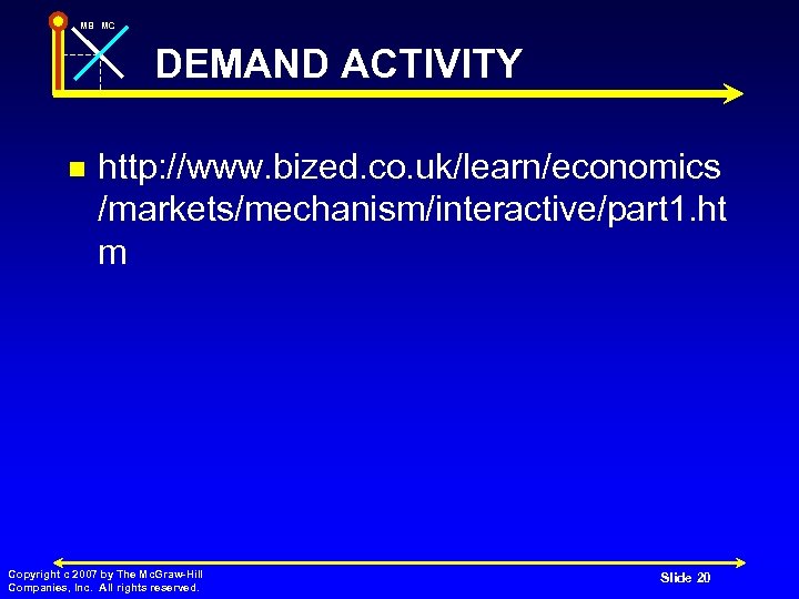 MB MC DEMAND ACTIVITY n http: //www. bized. co. uk/learn/economics /markets/mechanism/interactive/part 1. ht m Copyright c 2007 by The Mc. Graw-Hill Companies, Inc. All rights reserved. Slide 20