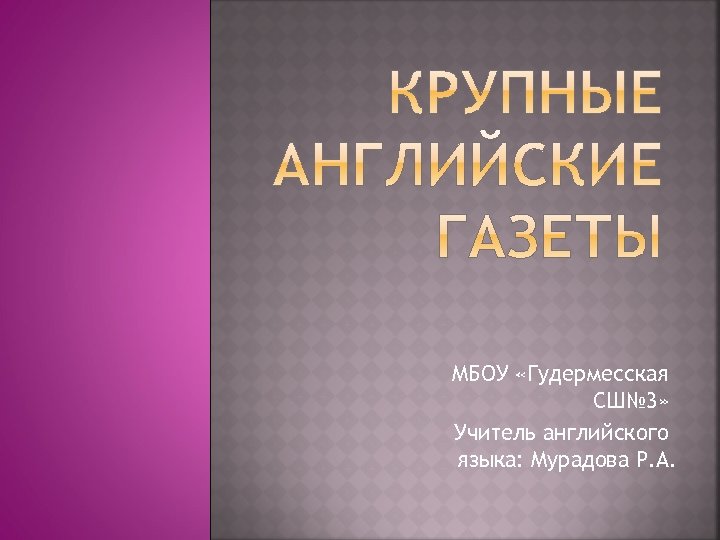 МБОУ «Гудермесская СШ№ 3» Учитель английского языка: Мурадова Р. А.