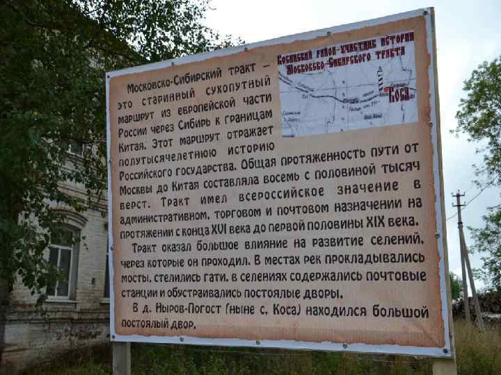 Косинский район – уникальная территория, на которой в 16 -18 веках проходил Московско -сибирский тракт. Через село Коса по центральной улице в течение многих десятков лет того времени проезжали гужевые (санные) повозки. По Косе и через деревню Селище бывали проездом видны в то время государственные и революционные деятели, писатели, поэты, ученые.