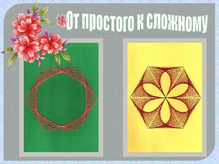 v Впервые ниточный дизайн появился в Англии в XVI в. Английские ткачи придумали особый способ переплетения ниток. Они вбивали в деревянные дощечки гвозди и в определённой последовательности натягивали на них нити. Получались ажурные изделия для украшения жилища. v Любители вышивать упростили эту технику. Они отказались от гвоздей и деревянной основы, заменив их иглой и цветным картоном(или бархатной бумагой). И появилась новая техника рукоделия – нитяная графика – изонить – изображение нитью.