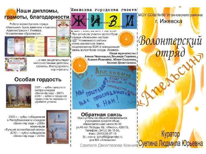 Буклет о волонтерском отряде «Апельсин» составитель: Двоеглазова Ксения