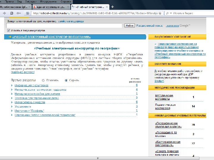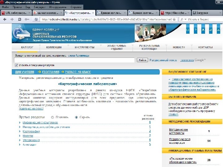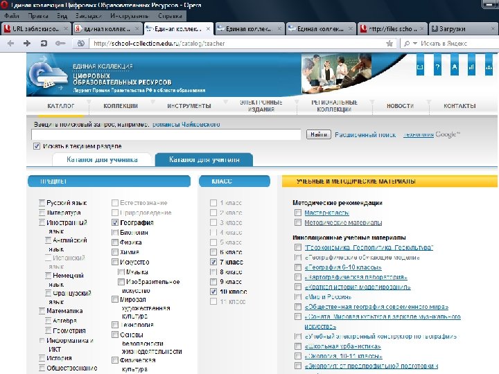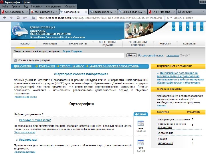 Федеральная система информационных образовательных ресурсов включает: • www. edu. ru - ФЕДЕРАЛЬНЫЙ ПОРТАЛ «РОССИЙСКОЕ ОБРАЗОВАНИЕ» • www. window. edu. ru - ПОРТАЛ «ЕДИНОЕ ОКНО ДОСТУПА К ОБРАЗОВАТЕЛЬНЫМ РЕСУРСАМ» • www. school. edu. ru - РОССИЙСКИЙ ОБЩЕОБРАЗОВАТЕЛЬНЫЙ ПОРТАЛ http: //fcior. edu. ru - ФЕДЕРАЛЬНЫЙ ЦЕНТР ИНФОРМАЦИОННО-ОБРАЗОВАТЕЛЬНЫХ РЕСУРСОВ • http: //school-collection. edu. ru – ЕДИНАЯ КОЛЛЕКЦИЯ ЦИФРОВЫХ ОБРАЗОВАТЕЛЬНЫХ РЕСУРСОВ