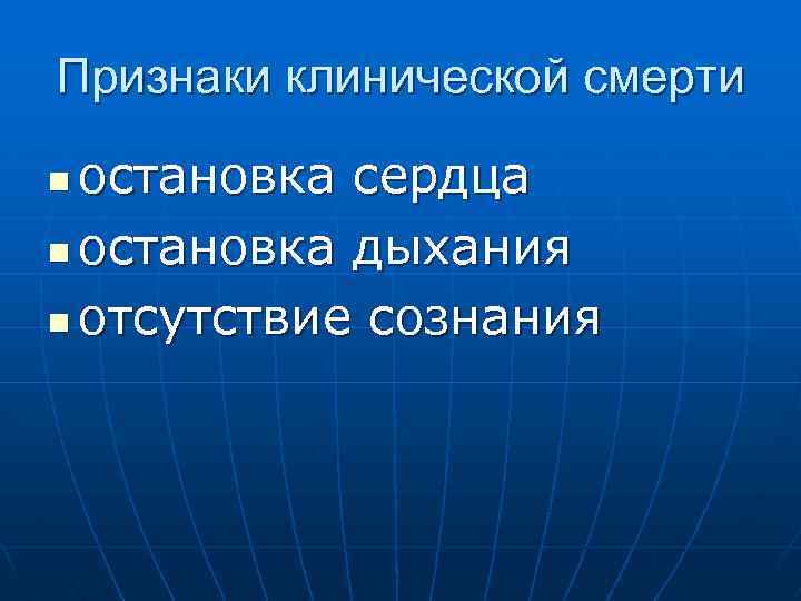 Признаки клинической смерти остановка сердца n остановка дыхания n отсутствие сознания n